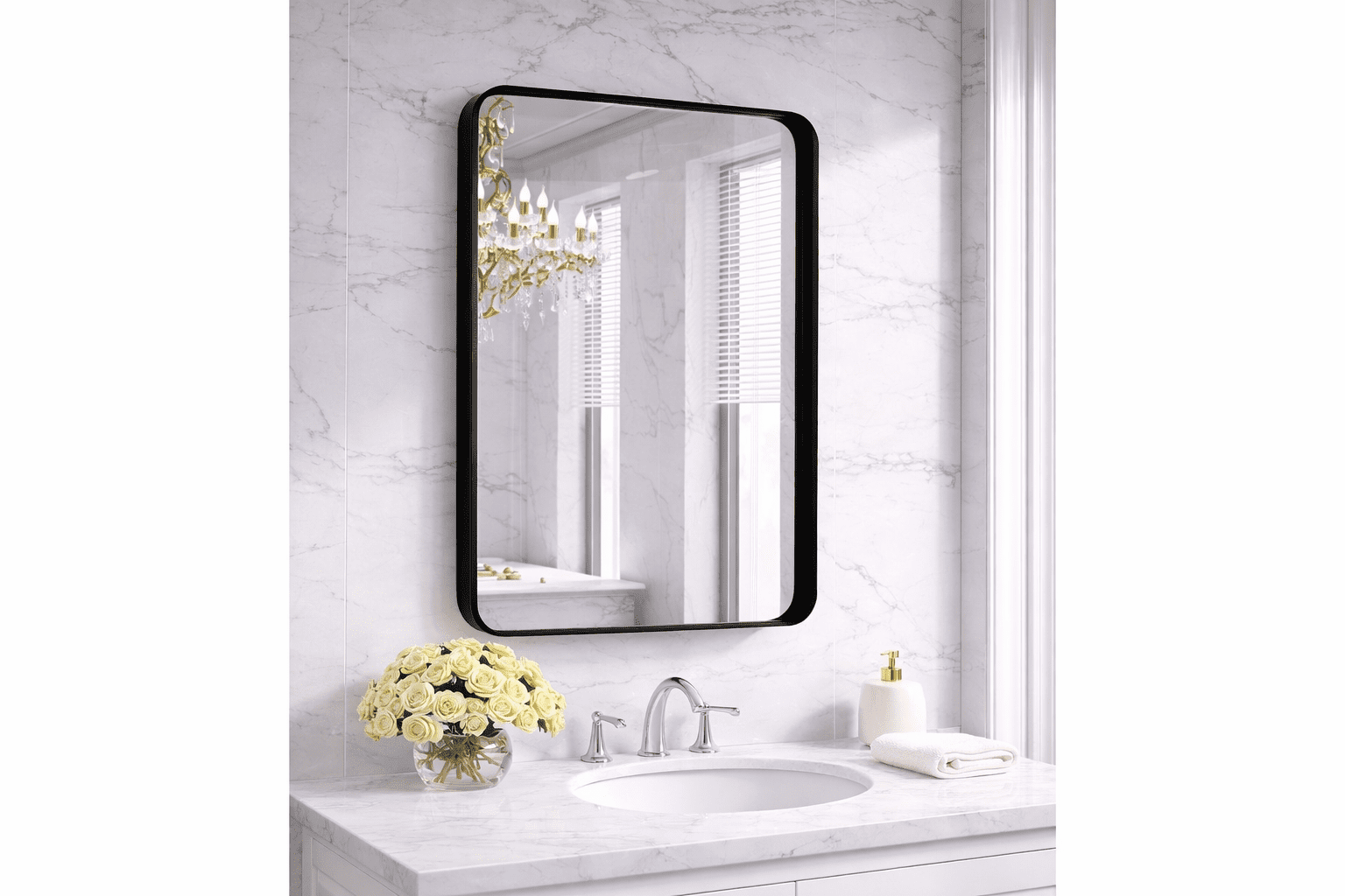 Black Framed Bathroom Vanity Mirror is the perfect way to turn an ordinary bathroom into a stunning, high-end space that feels warm, bright, and beautifully styled. The sleek matte black frame creates a clean, modern farmhouse look that instantly makes your bathroom feel bigger and more inviting.