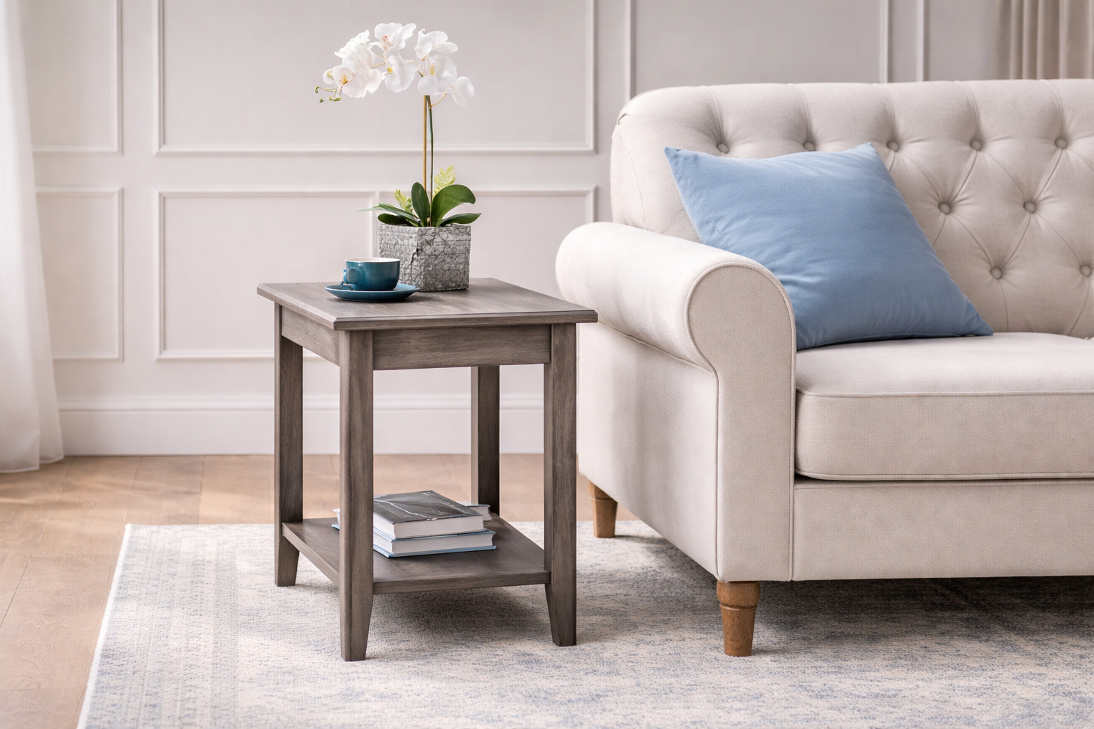 Narrow End Table for small spaces with storage shelf is the perfect way to make your living room feel more organized, cozy, and complete. Its slim design fits beautifully beside a sofa or chair without taking up extra space, while the lower shelf gives you room for books, baskets, or décor.